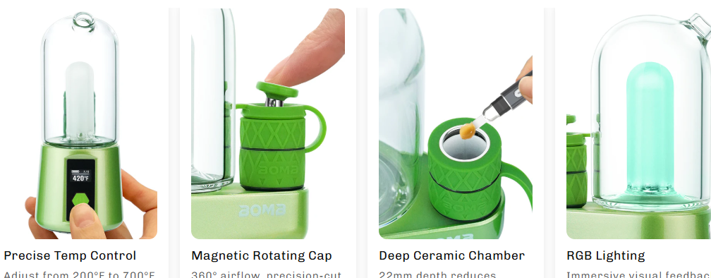 The LED display allows real-time temperature control from 200–700℉, ensuring perfect vaporization for different concentrate.